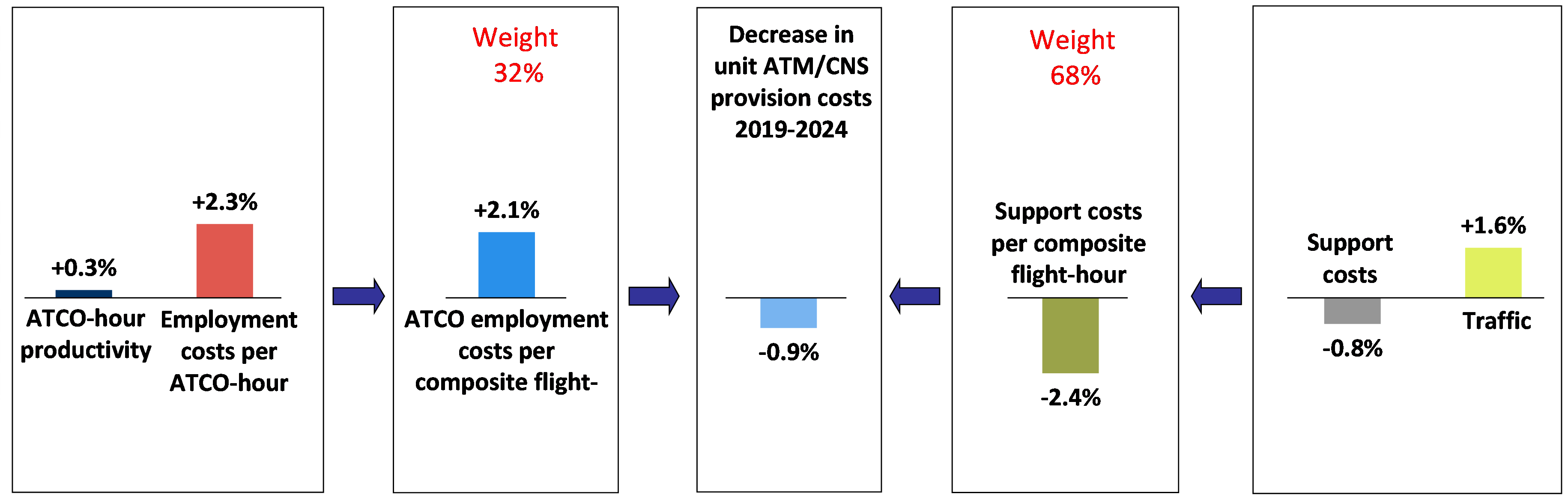 A more detailed analysis of the changes in cost-effectiveness, ATCO-hour productivity, ATCO employment costs per ATCO-hour and unit support costs will be available in the final ACE benchmarking report.